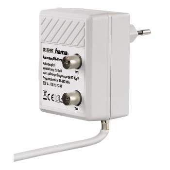 Amplificador Antena TV 2x12dB Blanco Hama